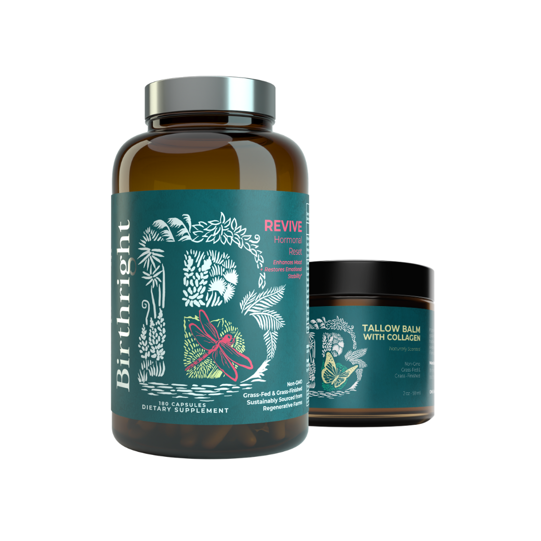 Revive, on the other hand, is our hormone support formula... perfect for any stage of womanhood, whether you’re trying to balance your cycle, support your mood, navigate postpartum hormone shifts, or ease the transition into menopause. Revive includes a blend of beef liver and kidney, red raspberry leaf, spirulina, bee pollen, milk thistle, dandelion, and vitamin E. It can be used at any time, but we suggest starting slowly while breastfeeding and waiting until your milk supply is well established.